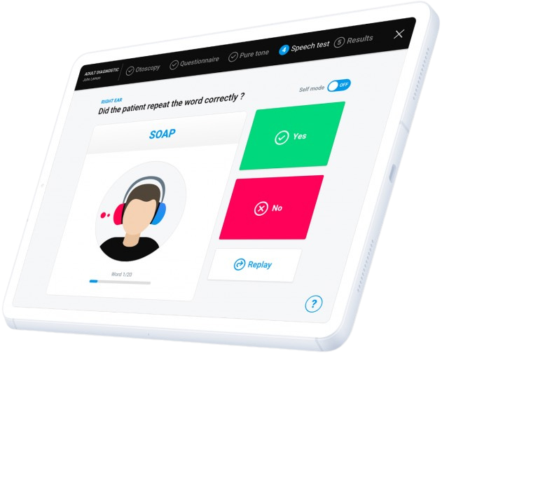 Le patient peut réaliser un test auditif simple et rapide en vocale et dans le bruit en 3 minutes.